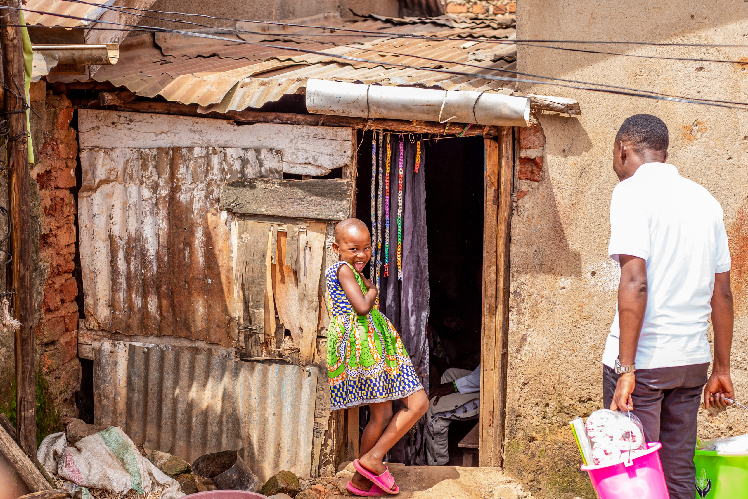 Behind the smile of a bright young girl stands a home patched together with rusty iron sheets, rotting wood, and peeling bricks. The roof, worn and dented, leans under the weight of many rainy seasons. The doorway hangs on hinges of faith, its curtain made of plastic beads trying to bring color to a place that desperately needs change.